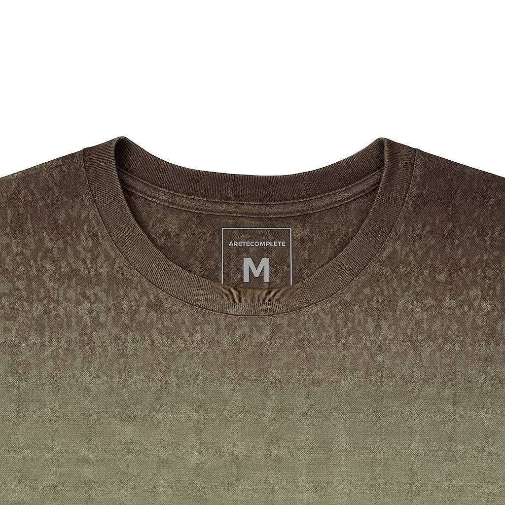 A gradient born from intention and chance. Each Oxide Fade shirt passes through a multi-stage garment dye process by hand, where pigment is layered, fixed, and washed down repeatedly to create depth and variation. Burgundy shifts into moss green, revealing tones that echo metal left to weather or forest light fading at dusk. The result is a surface alive with erosion and transformation — no two shirts ever alike.